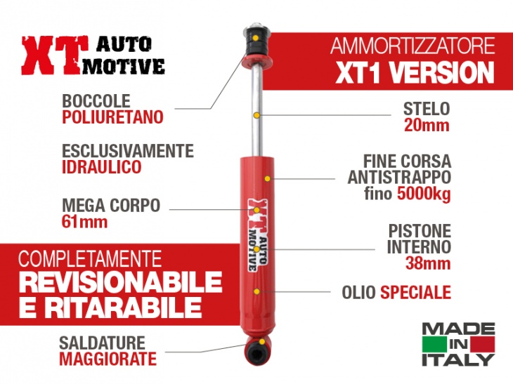 New XT AUTOMOTIVE shock, exclusively MADE ITALY, external oversized body 61mm, 38mm internal piston, 20mm piston rod, internal lock up to 5000kg, REBUILDABLE FOR HYUNDAI TERRACAN REAR (FOR +4 CM LIFT)
