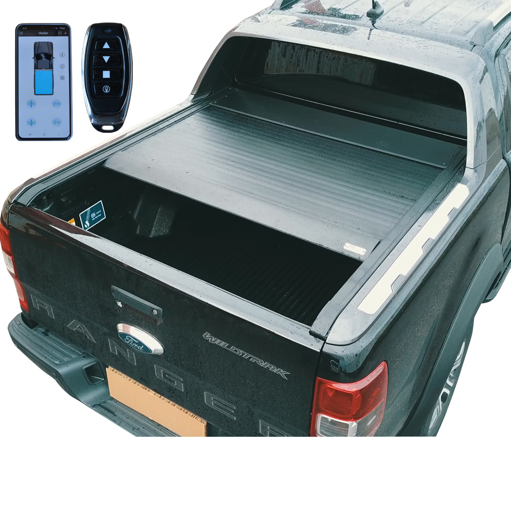 - Με δύο (2) τηλεχειριστήρια μεγάλης εμβέλειας, ώστε να έχετε άμεσο έλεγχο στο καπάκι, και να μπορείτε να δώσετε εντολές, είτε είστε μέσα στην καμπίνα είτε σε απόσταση από το όχημα. Οι εντολές που μπορείτε να δώσετε είναι: Άνοιγμα, κλείσιμο, σταμάτημα σε οποιοδήποτε σημείο θέλετε, άνοιγμα και κλείσιμο των led φώτων που βρίσκονται εσωτερικά του ρολού. Γρήγορο άνοιγμα και κλείσιμο σε λιγότερο από επτά (7) δευτερόλεπτα.