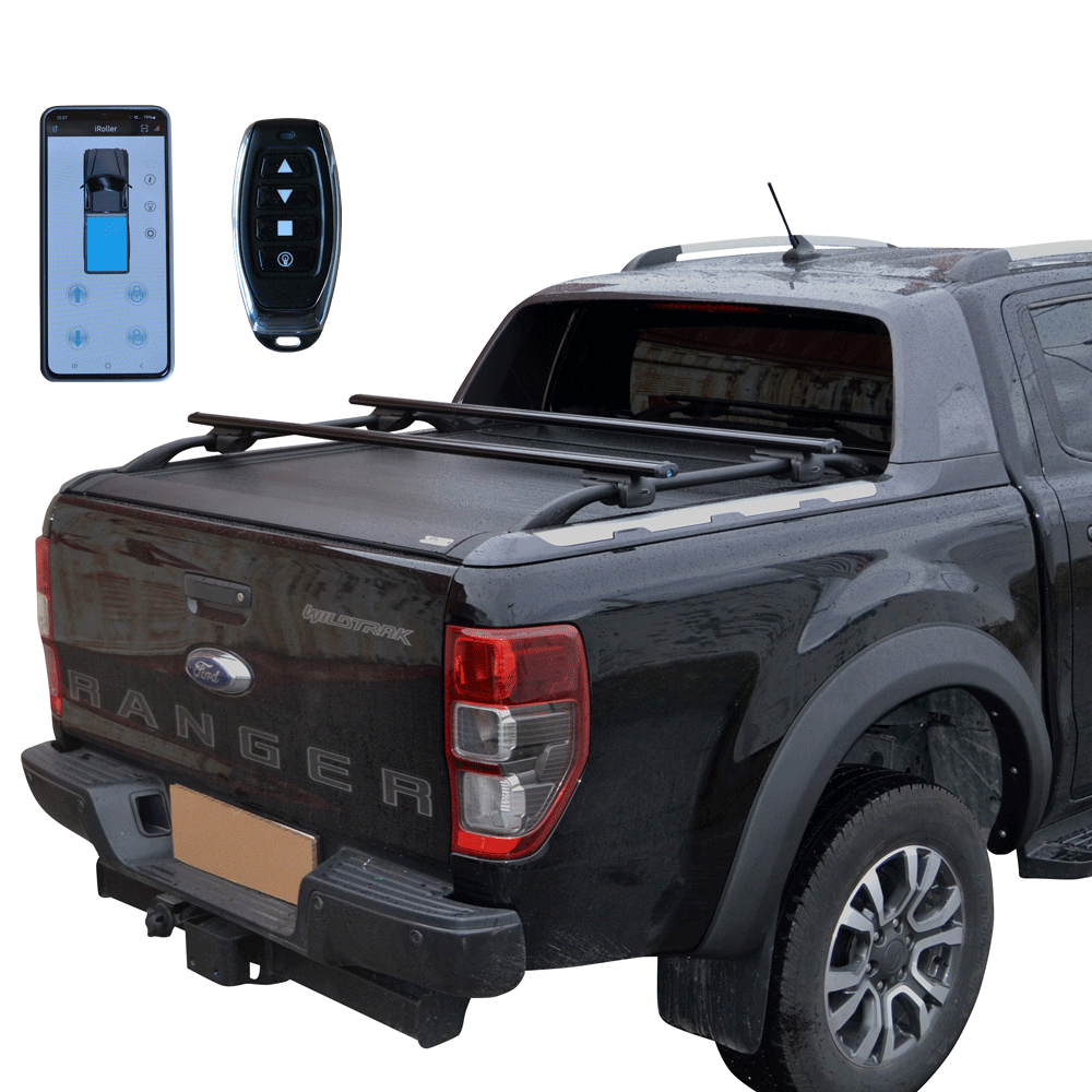 - Με δύο (2) τηλεχειριστήρια μεγάλης εμβέλειας, ώστε να έχετε άμεσο έλεγχο στο καπάκι, και να μπορείτε να δώσετε εντολές, είτε είστε μέσα στην καμπίνα είτε σε απόσταση από το όχημα. Οι εντολές που μπορείτε να δώσετε είναι: Άνοιγμα, κλείσιμο, σταμάτημα σε οποιοδήποτε σημείο θέλετε, άνοιγμα και κλείσιμο των led φώτων που βρίσκονται εσωτερικά του ρολού. Γρήγορο άνοιγμα και κλείσιμο σε λιγότερο από επτά (7) δευτερόλεπτα.